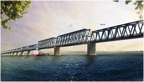 圖為中俄同江鐵路大橋建成后的效果圖。