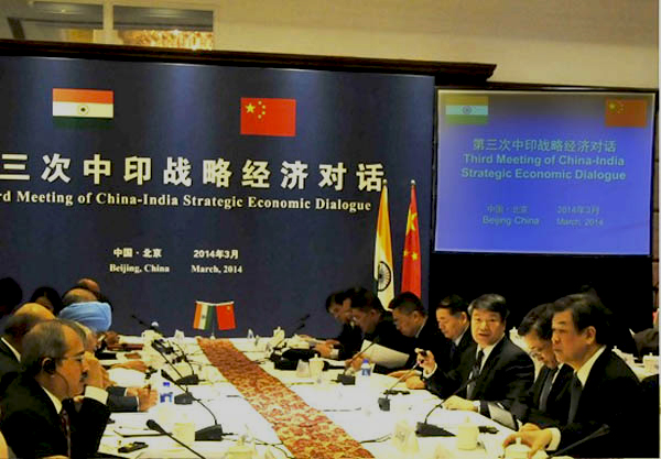 3月18日,交通運輸部副部長、國家鐵路局局長陸東福(右一)出席第三次中印戰略經濟對話。
