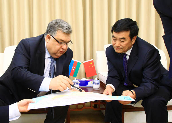 3月28日,國家鐵路局副局長朱望瑜(右一)在北京會見阿塞拜疆駐華大使拉季夫·甘基洛夫一行,雙方就加強中阿鐵路政府間合作交流,共同推進絲綢之路經濟帶建設,促進區域鐵路互聯互通等問題交換了意見。