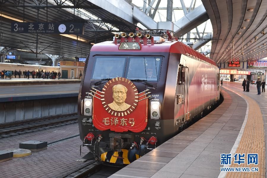 12月25日,第五次換型后的“毛澤東號”機(jī)車正式投入運(yùn)行,牽引T1次列車由北京站始發(fā),于12月26日毛澤東誕辰121周年紀(jì)念日當(dāng)天早晨抵達(dá)終點(diǎn)站長沙站。 “毛澤東號”機(jī)車誕生于1946年10月,現(xiàn)隸屬于北京鐵路局豐臺機(jī)務(wù)段。68年來,從最初的蒸汽機(jī)車到內(nèi)燃機(jī)車,再到此次換型后的和諧3D型大功率電力機(jī)車,“毛澤東號”見證了中國鐵路的發(fā)展與進(jìn)步,更創(chuàng)造了累計(jì)安全行駛963萬公里的業(yè)績,被譽(yù)為“火車頭中的火車頭”。