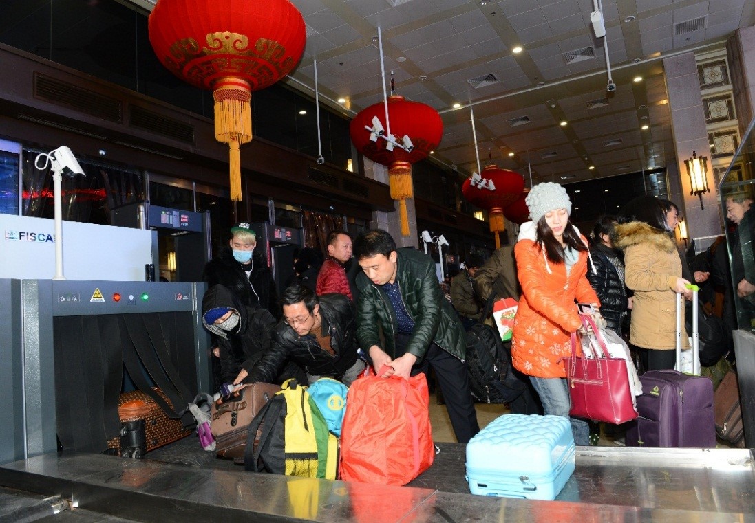 隨著春運高峰的到來,北京站12條嶄新的安檢儀通道全部開啟,旅客驗證驗票后只需走幾米就可以進行行李安檢。李維娜 攝