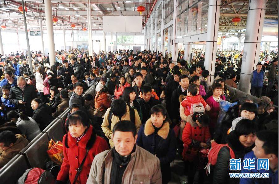 重慶北站北場第三候車廳內,旅客在檢票口前排隊候車。圖片來源:新華網