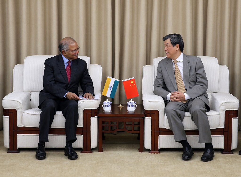 3月17日,國家鐵路局局長陸東福在北京會見了印度共和國駐華大使康特一行。雙方回顧了去年9月習近平主席訪印時兩國簽署的鐵路政府間合作文件,一致認為雙方在既有線提速、高速鐵路、車站再開發、重載培訓、研究在印設立鐵道大學等重點項目合作取得了良好開端,進展總體順利。雙方還就在既有共識和合作基礎上深化政府間合作深入交換了意見。