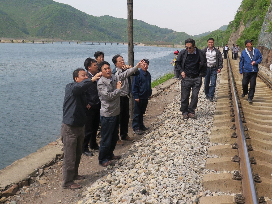 圖為局黨組成員、副局長朱望瑜(前左二)現場檢查沈陽鐵路局II級防洪點。
