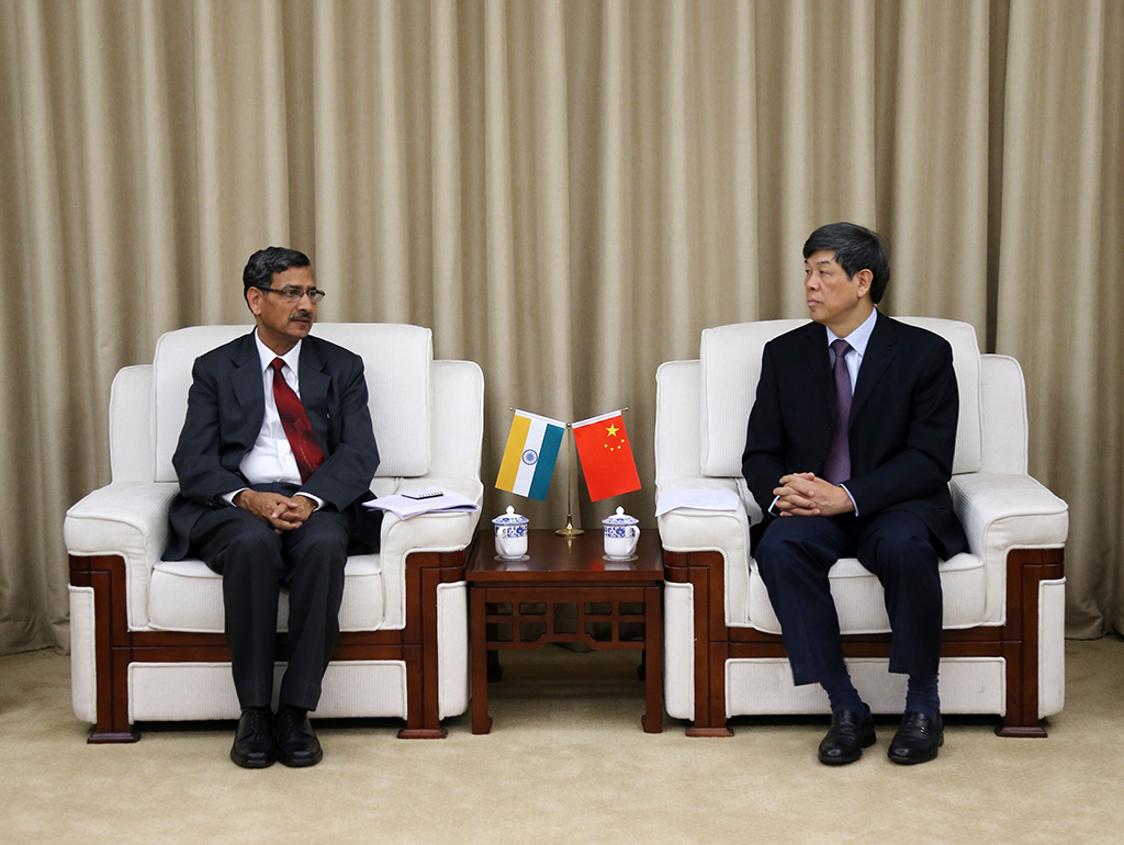 6月15日,國家鐵路局局長陸東福在北京會見了印度鐵路委員會主席米塔爾一行。雙方就深化中印鐵路在既有線提速技術改造、高速鐵路規劃建設和產能合作等五個領域合作,加快實施2015-2016行動計劃等問題深入交換了意見。