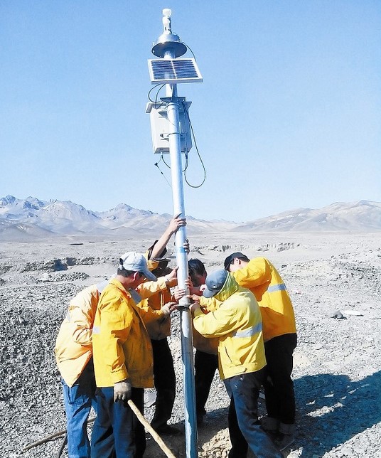 庫爾勒工務段職工在吐庫二線魚兒溝至焉耆段安裝了4臺有線雨量儀和8臺無線雨量儀,全力做好防洪防汛工作。圖片攝影:楊生盛