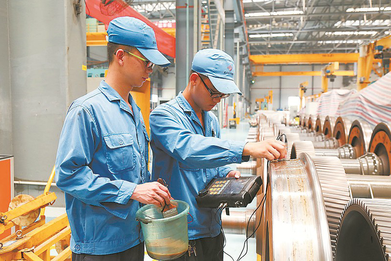 暑期,武漢大功率機(jī)車檢修段認(rèn)真開展機(jī)車慣性病害專項(xiàng)整治,全面提升機(jī)車運(yùn)用質(zhì)量。圖為該段職工在為機(jī)車輪對(duì)進(jìn)行超聲波探傷。圖片攝影:廖超
