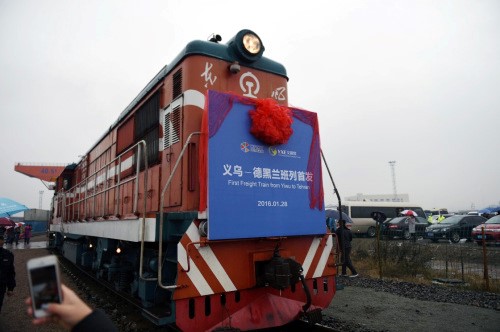 1月28日,“義烏—德黑蘭”首趟班列滿載浙江義烏出口的小商品,從義烏鳴笛啟程。這趟班列將從新疆阿拉山口出境,途經(jīng)哈薩克斯坦、土庫曼斯坦,奔赴伊朗首都德黑蘭。這是首列從中國開往中東的鐵路集裝箱貨運(yùn)班列。