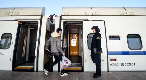 1月26日,西側始發站吉林站的“動姐”們準備登車上崗。