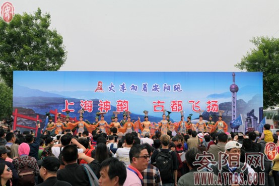 4月25日,600名游客乘坐由上海始發的旅游專列抵達河南安陽后,參加“火車向著安陽跑”暨“上海神韻·古都飛揚”活動。來源:安陽網