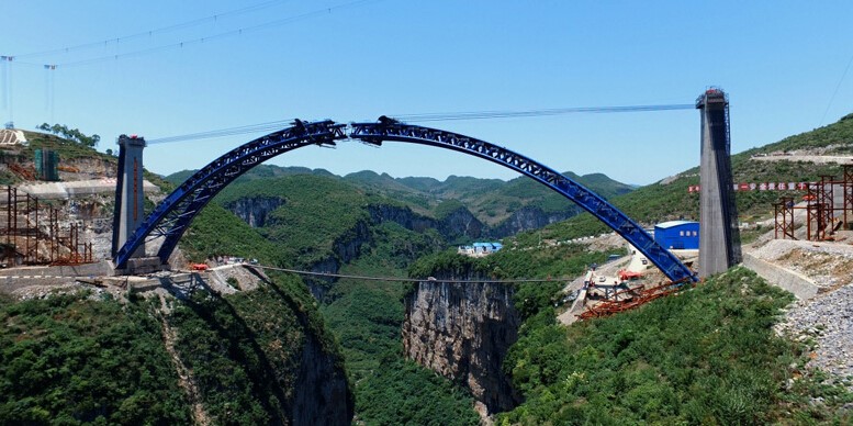 5月11日,我國高鐵首座鋼管混凝土轉體拱橋,成都至貴陽高速鐵路的重難點控制性工程——西溪河大橋順利實現轉體合龍。大橋的順利合龍為我國特殊結構橋梁的科研與施工積累了成功經驗,也為成貴鐵路按計劃建成通車奠定基礎。圖為即將合龍的西溪河大橋。