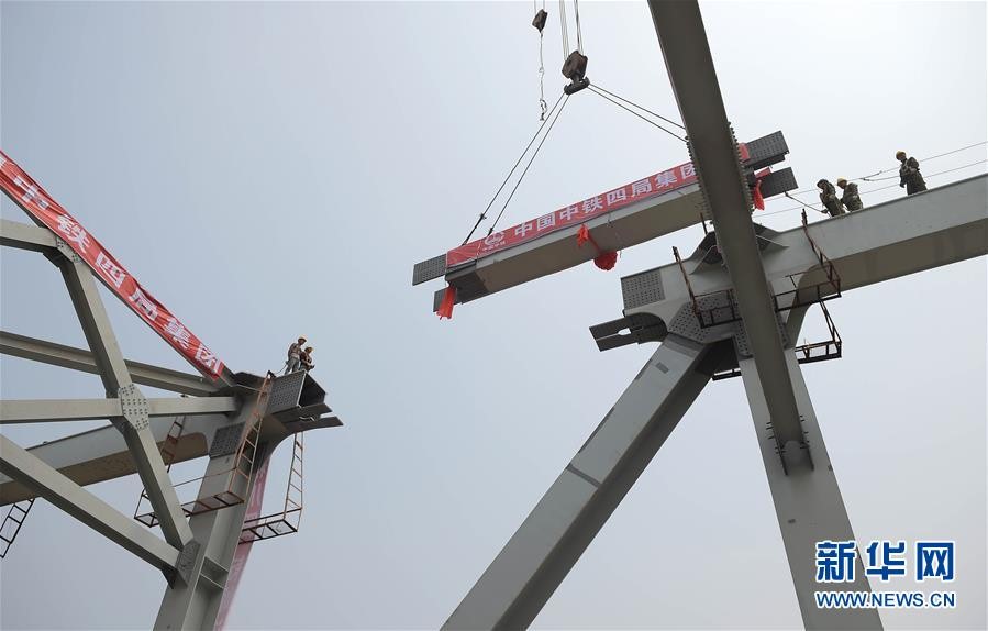5月30日,由中鐵四局集團鋼結構有限公司承建的位于四川樂山市的成貴鐵路五通岷江特大橋鋼桁梁成功合龍。該橋采用的下弦變桁高結構在我國尚屬首次采用,成功填補了國內在大跨度下弦變桁高鋼桁梁施工領域的技術空白。
