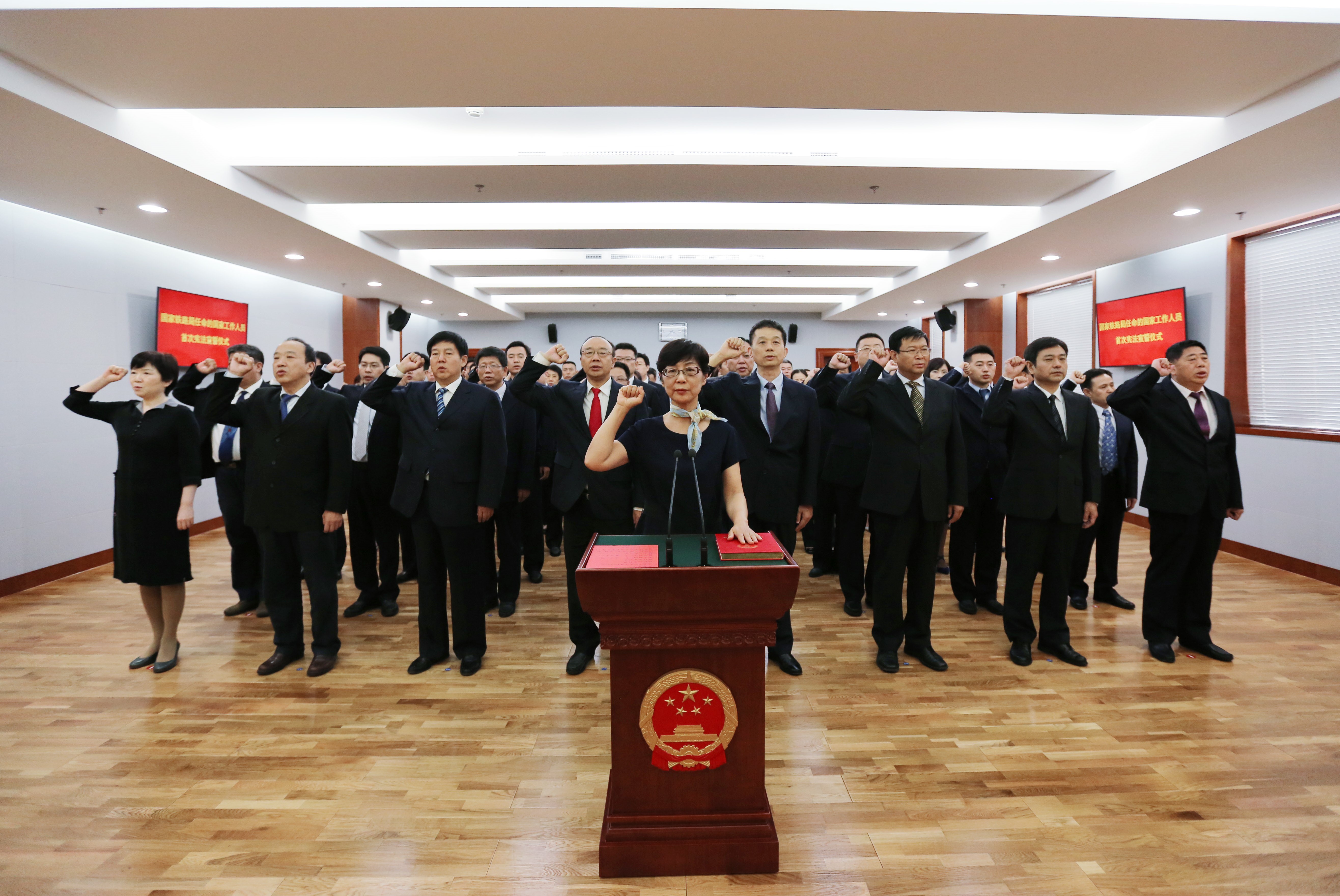 9月21日下午,國家鐵路局在局機關首次舉行憲法宣誓儀式,國家鐵路局局長陸東福監誓,局黨組成員參加儀式。今年以來國家鐵路局任命的處級以上干部,以及局總工程師、安全總監,局機關、各地區鐵路監管局、局屬事業單位處級以上領導干部代表,共150人依法進行憲法宣誓。