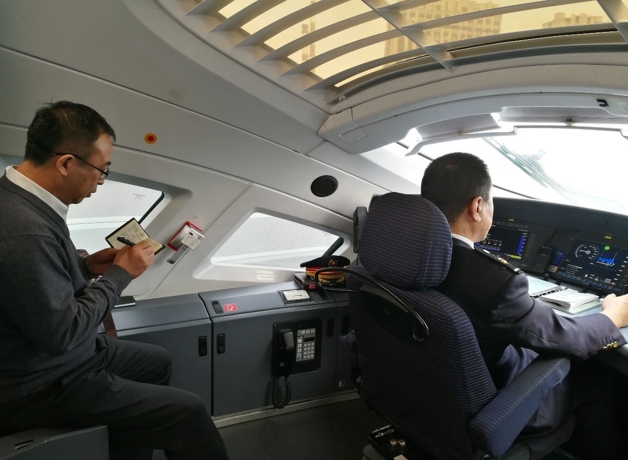 圖為沈陽鐵路監管局添乘長琿城際列車檢查鐵路沿線安全環境。