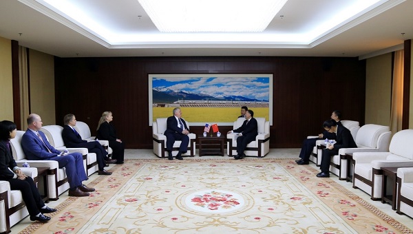 10月31日,國家鐵路局局長楊宇棟(右三)在北京禮節性會見來訪的美國聯邦鐵路署副署長勞比(左五)一行。
