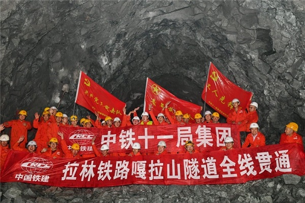 拉薩至林芝鐵路嘎拉山隧道順利貫通