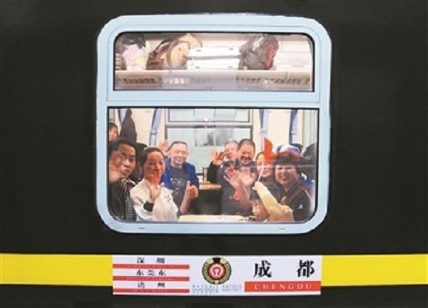 旅客在加開列車上揮手致意。(來源:人民鐵道網(wǎng))