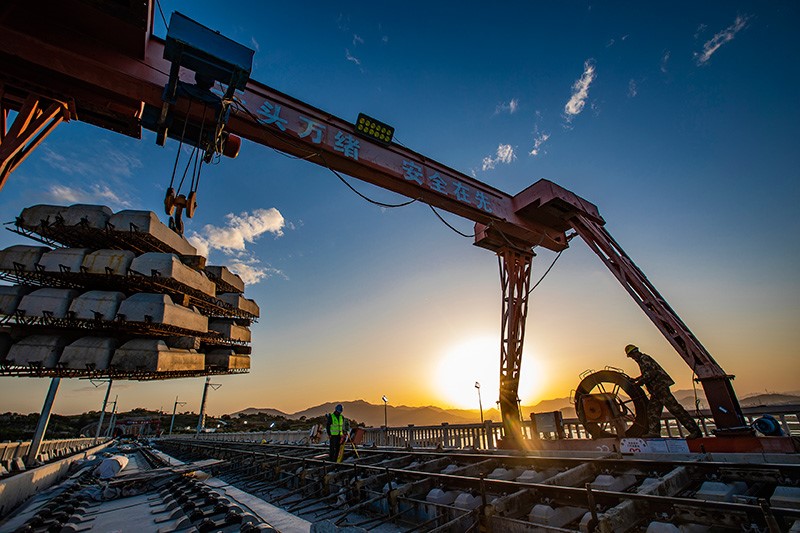 新建福廈鐵路湄洲灣跨海大橋無(wú)砟軌道施工完成