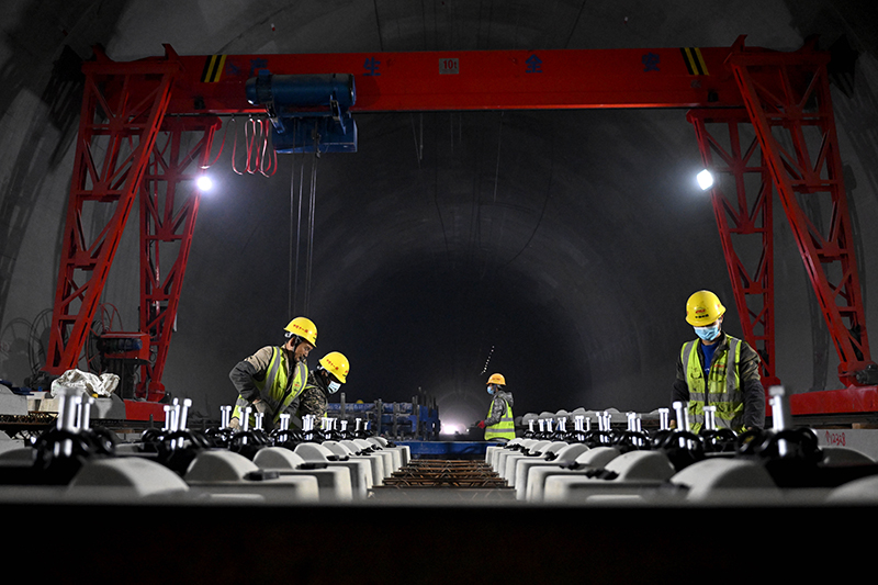 3月14日,在中鐵十一局池(州)黃(山)鐵路建設現場,工人們搶抓工期進行無砟軌道施工,為后續鋪軌打好基礎。池黃鐵路全長約125公里,設計時速350公里,是武(漢)杭(州)快速鐵路通道的重要組成部分。