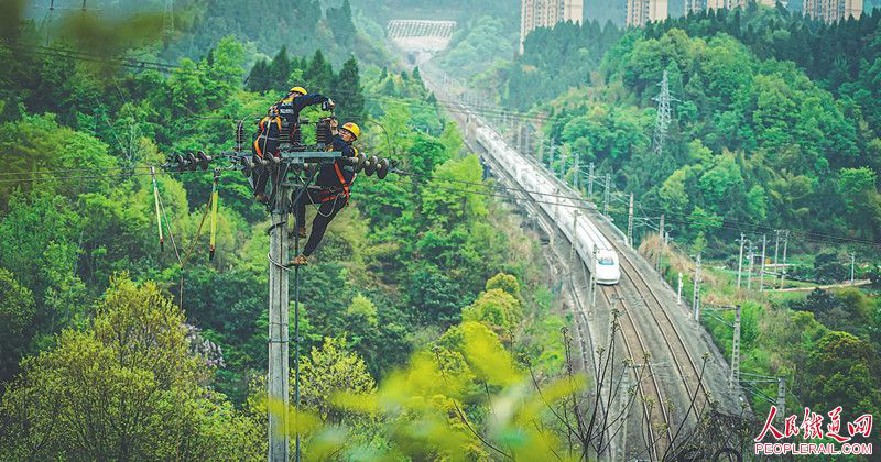 半空中,供電人正更換吊弦、緊固螺栓、擦拭絕緣子……一系列標準化作業(yè)緊張有序地進行著。伴著旭日東升、烈日當空、夕陽西下,他們與藍天白云、璀璨星河對話,不知疲倦保障供電設(shè)備穩(wěn)定,為大動脈提供源源不斷的動能。