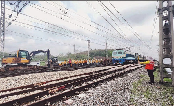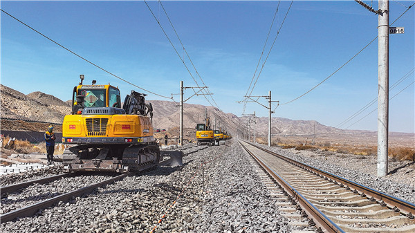 “天窗”現(xiàn)場,機器轟鳴、人聲鼎沸,鐵路人默契合作、密切配合,如行云流水般熟練操作著機器設(shè)備。