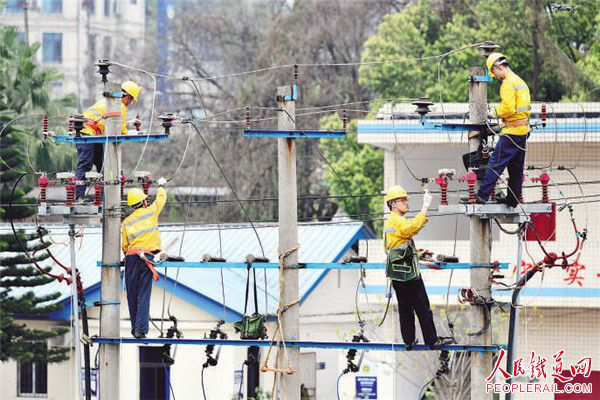 近日,宜賓工電段電力車間職工對管內(nèi)南岸壩站電力設(shè)備進行檢修。胡志強 攝