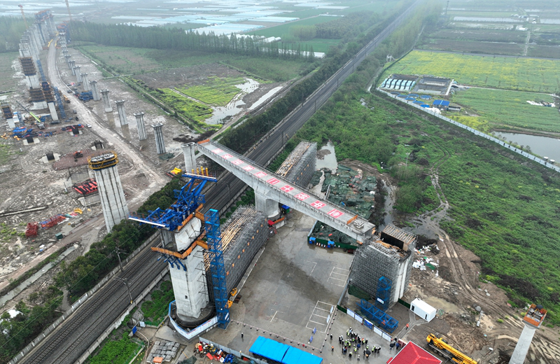 4月2日,滬渝蓉高鐵武宜段漢口至漢川東西南下行聯絡線跨漢丹鐵路特大橋開始進行轉體。跨漢丹鐵路特大橋轉體結構呈“T字型”,長113.5米,寬7.1米,總重量超6000噸,是滬渝蓉高鐵武宜段漢口至漢川東段重難點控制性工程之一。滬渝蓉高鐵是國家“八縱八橫”高速鐵路規劃中沿江通道的關鍵區段,橫貫國內6個省市,串聯起長三角城市群、長江中游城市群和成渝雙城經濟圈,對完善長江綜合立體交通運輸體系和推進長江經濟帶發展具有重大意義。