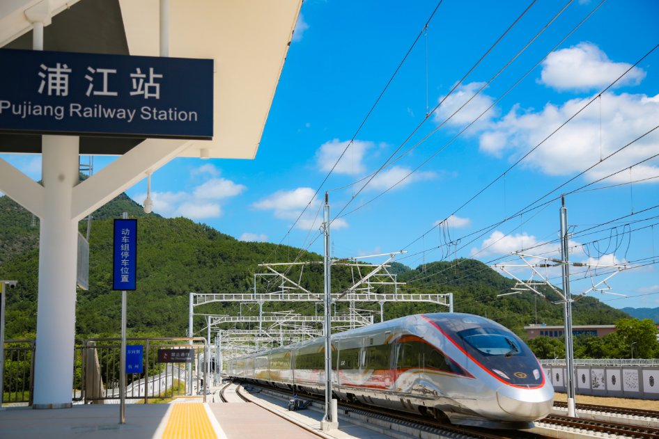 7月30日,試驗(yàn)列車通過杭溫高鐵浦江站。
