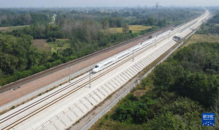 列車行駛在宣績高鐵線路上。