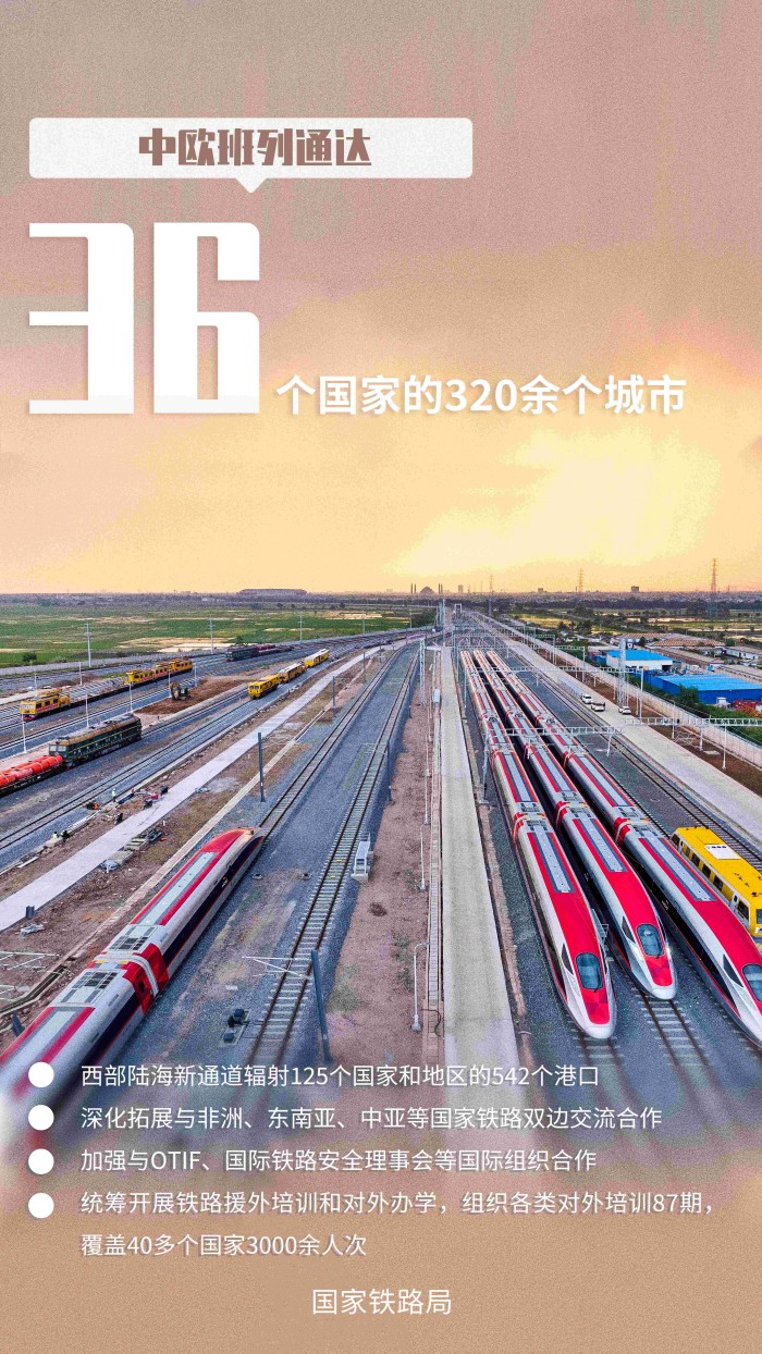 在中國特色大國外交引領下,中國鐵路國際影響力和知名度不斷提升,中國高鐵已經成為一張“亮麗名片”,國際合作深度和廣度不斷拓展。目前,中歐班列通達36個國家的320余個城市,西部陸海新通道輻射125個國家和地區的542個港口。