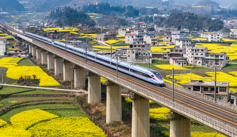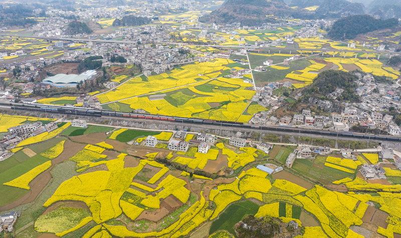 仲春時節,貴州省多地油菜花競相綻放。一趟趟列車在油菜花海之中穿行,勾勒出黔貴大地朝氣蓬勃的春日景象。