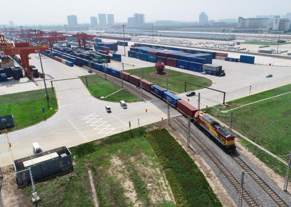 X9015次中歐班列長(zhǎng)安號(hào)從西安國(guó)際港站出發(fā)開(kāi)往哈薩克斯坦。