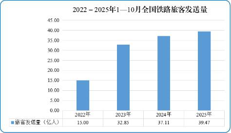 圖1 2022—2025年1—10月全國(guó)鐵路旅客發(fā)送量