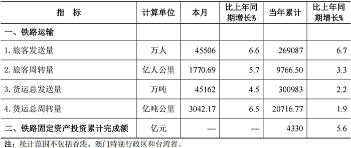 2025年7月份全國(guó)鐵路主要指標(biāo)完成情況