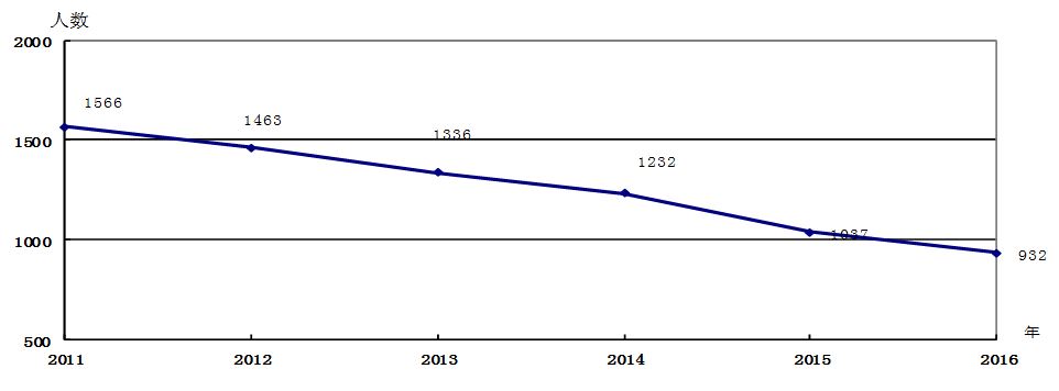 2011年以來鐵路交通事故死亡人數變化趨勢圖