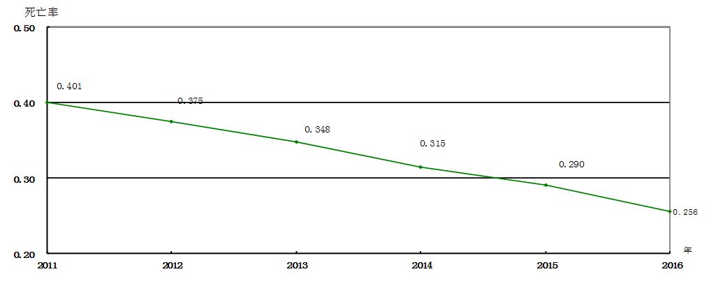 2016年全國鐵路未發生鐵路交通特別重大、重大事故;發生較大事故3件,同比減少3件。鐵路交通事故死亡人數932人,同比減少死亡105人,下降10.1%;10億噸公里死亡率[注釋5]0.256,同比下降11.7%。