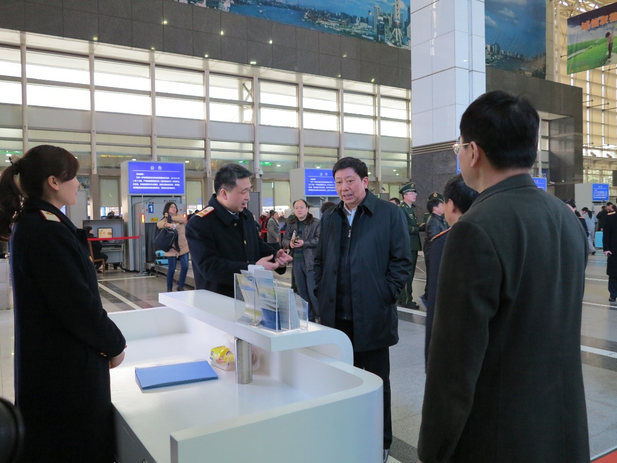 圖為局黨組成員、副局長劉克強檢查上海站候車大廳