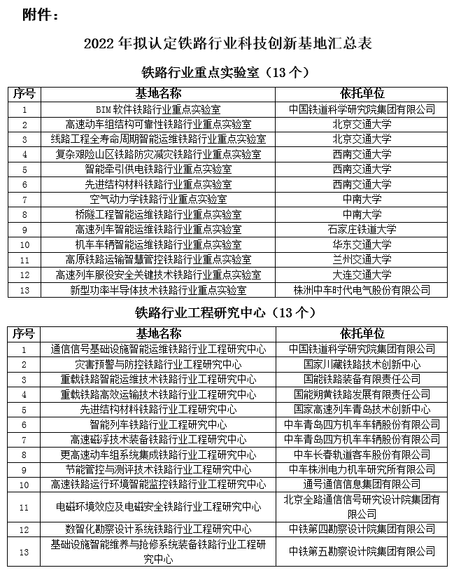 附件:2022年擬認定鐵路行業科技創新基地匯總表
