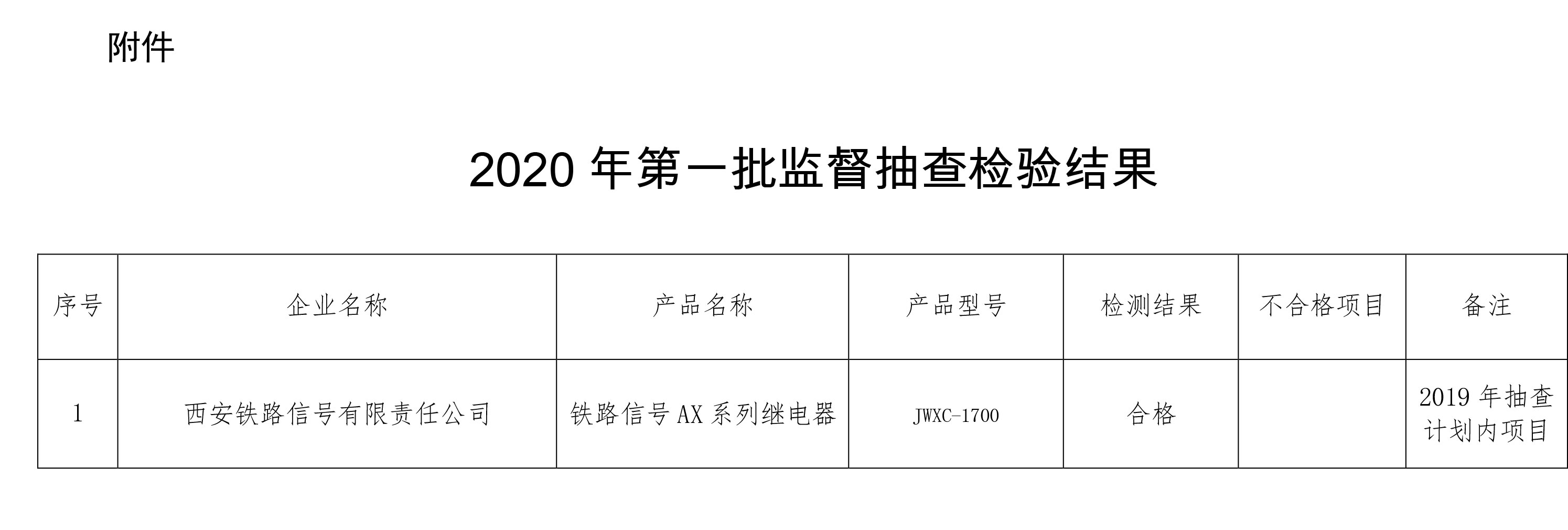 西安鐵路監督管理局關于監督抽查鐵路專用產品質量情況的通報(2020年第1批)